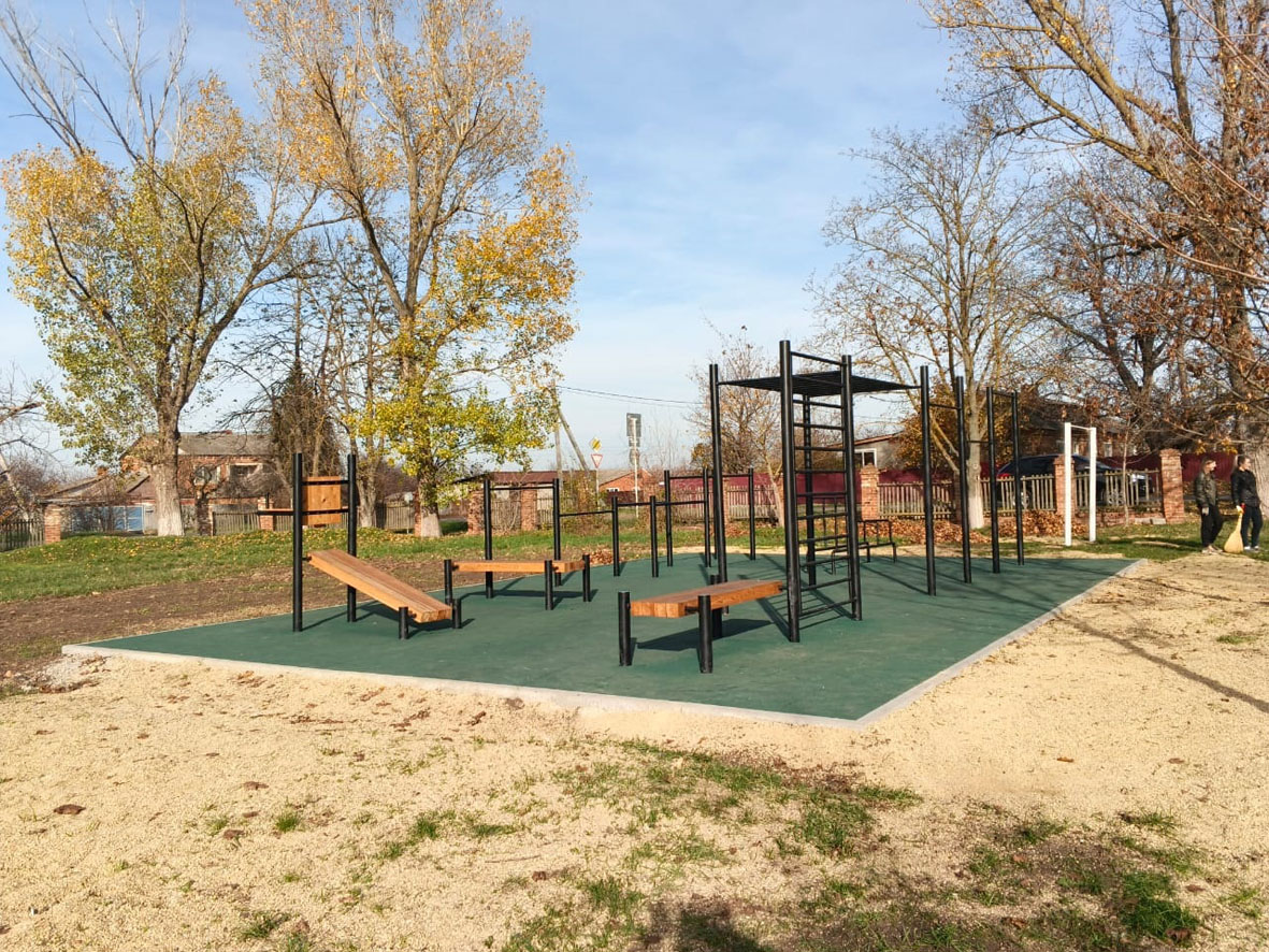 Новую спортивную зону обустроили в парке по улице Лермонтова около детского сада № 50. Территория площадью 96 квадратных метров имеет прорезиненное покрытие, оборудована турниками, тремя видами брусьев, рукоходом и скамейками.