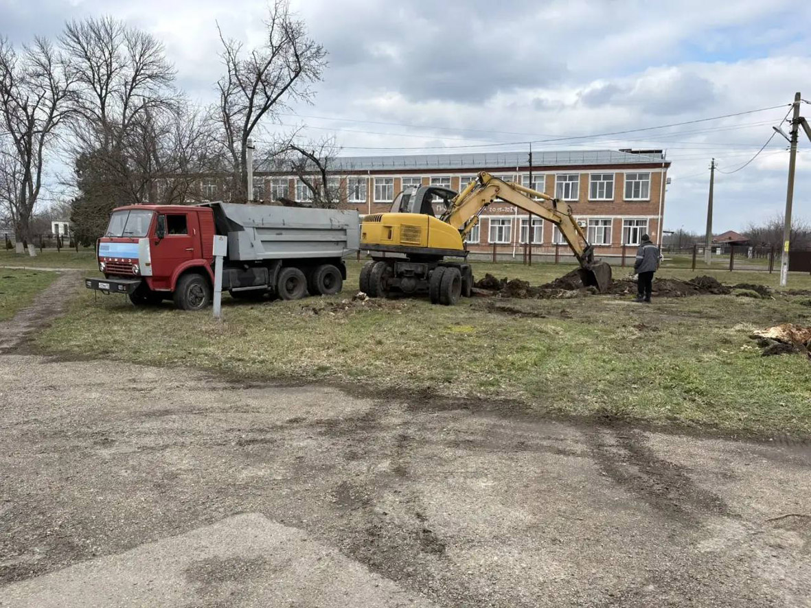 Представители Совета молодых депутатов Усть-Лабинского района Коба Кочуа и Игорь Попов организовали работу экскаватора, а глава Восточного поселения Александр Белозуб выделил транспорт для вывоза строительного мусора и растительных остатков.