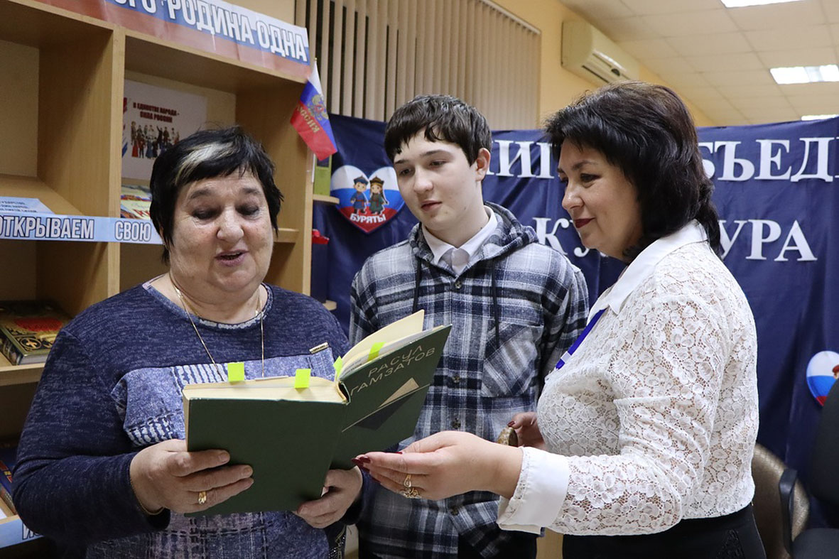 В Усть-Лабинской городской библиотеке-филиале № 1 праздник открыла мозаика народов России «Сила в единстве». Звучала виртуозная игра на флейте и скрипке, а проникновенное чтение стихотворения Расула Гамзатова «Журавли» на аварском языке никого не оставило равнодушным. Кульминацией стало награждение активных читателей и волонтеров.